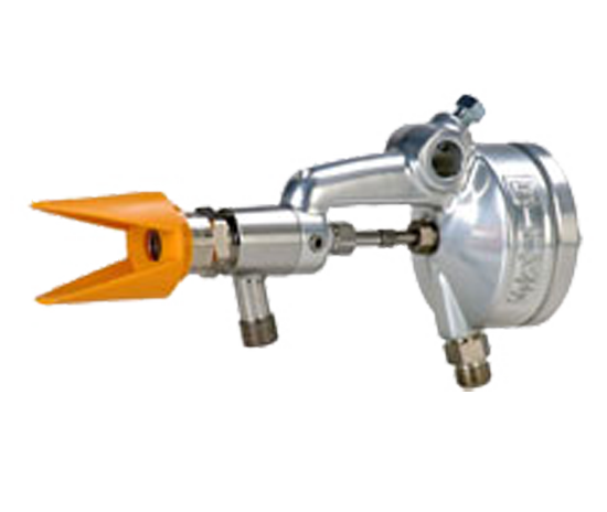 La pistola de pulverización automática Airless modelo 550 se utiliza para pulverizar revestimientos protectores como lacas, esmaltes, emulsiones a base de agua, agentes de desmoldeo y amortiguadores de sonido. Está equipado con un protector de punta, pasajes de fluido de acero inoxidable y cuerpo de aluminio forjado.